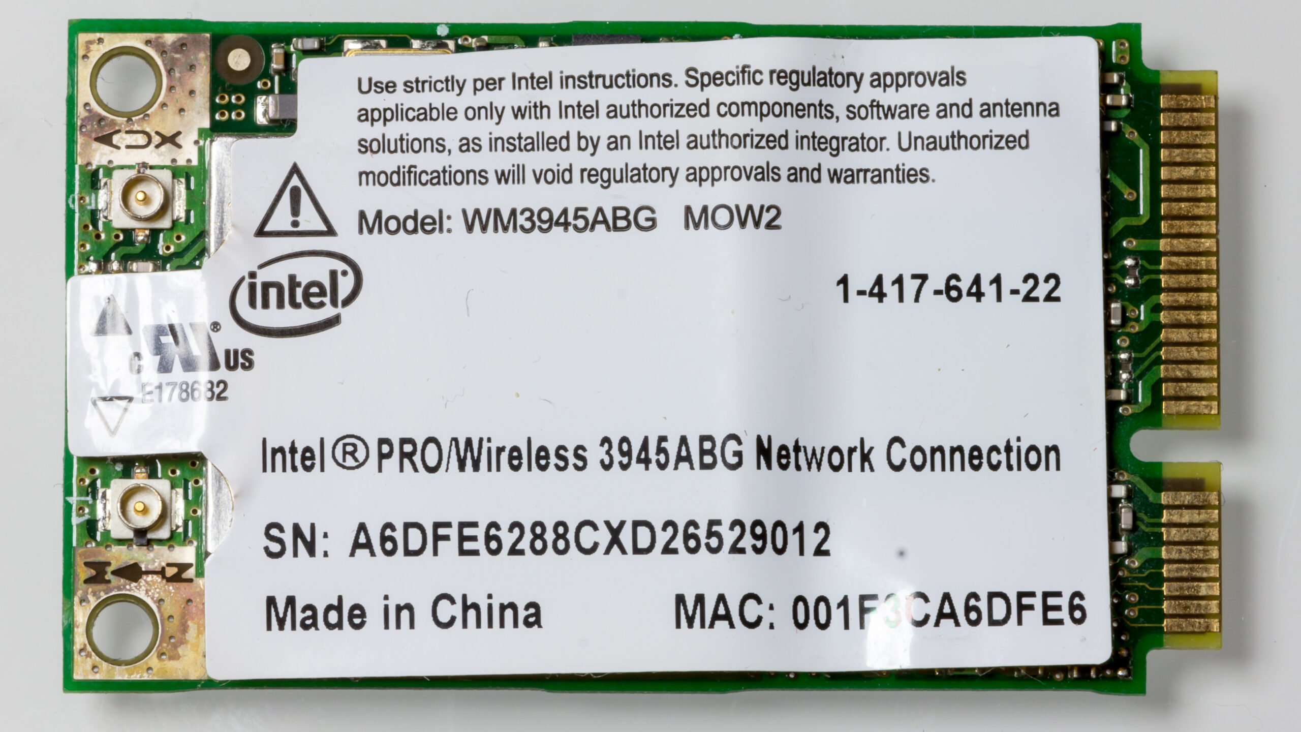 / Intel WM3945ABG Wireless LAN Kart